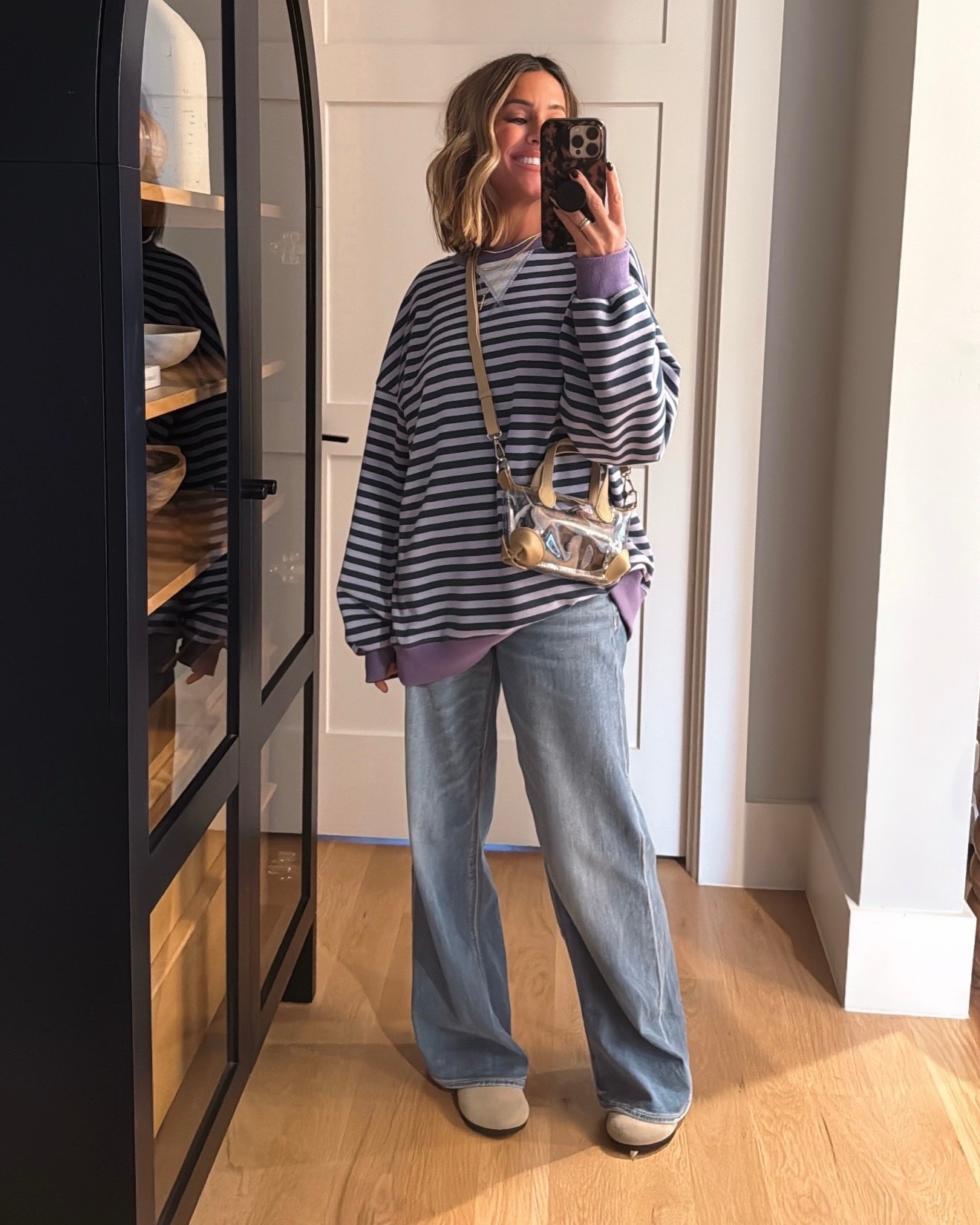 Casual comfies, but make it cute! Mediums in sweatshirt. Love this bag + leopard sneakers!