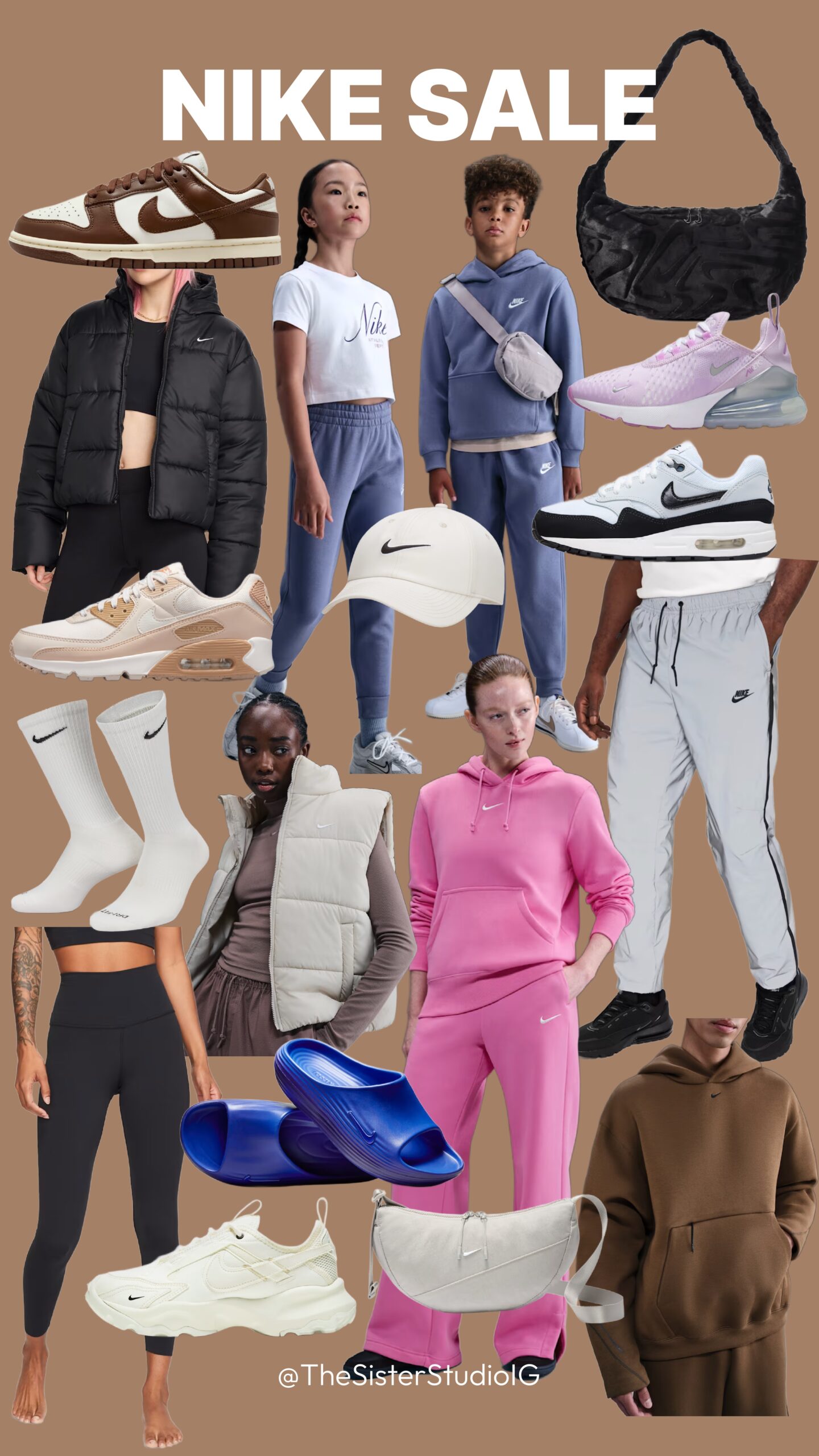 Dunk Low Women’s Shoes // Puffer Jacket  // TC 7900 Women’s Shoes // Socks // Leggings // Air Max 90 Women’s Shoes // Slides // Crossbody // Men’s Woven Reflective Pants // Hoodie //  Puffer Vest  // Hat // Air Max 1 Big Kids’ Shoes // Nike Air Max 270 Big Kids’ Shoes // Faux Fur Slouchy Bag (19L) //Big Kids’ Cropped T-Shirt // Fleece Big Kids’ Joggers // Fleece Big Kids’ Pullover Hoodie // Fleece Women’s Sweatshirt//Fleece Women’s High-Waisted Pants // Fleece Big Kids’ Oversized Pullover