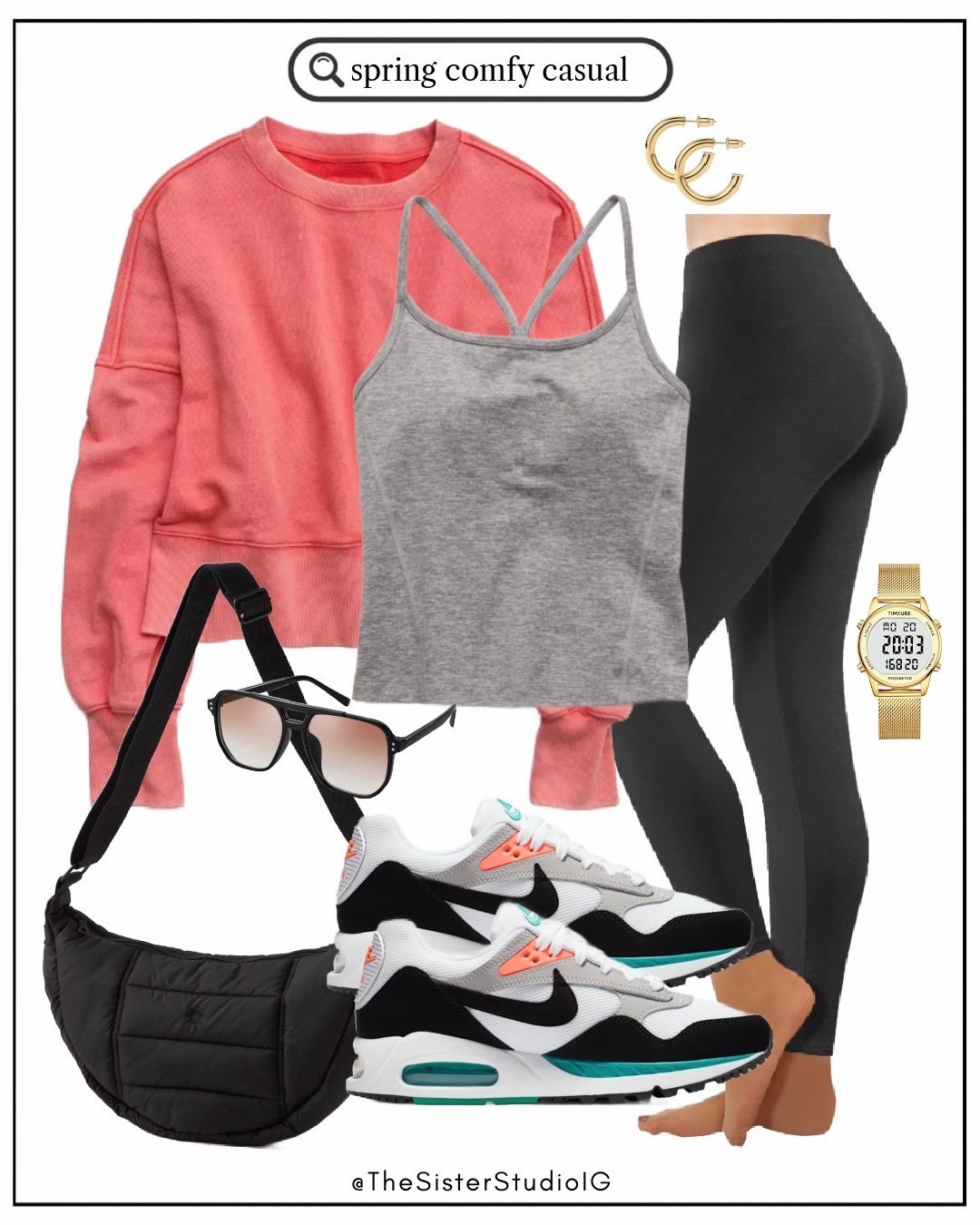 Sweatshirt // Tank // Leggings // Sneakers // Bag // Watch //Earrings // Sunglasses