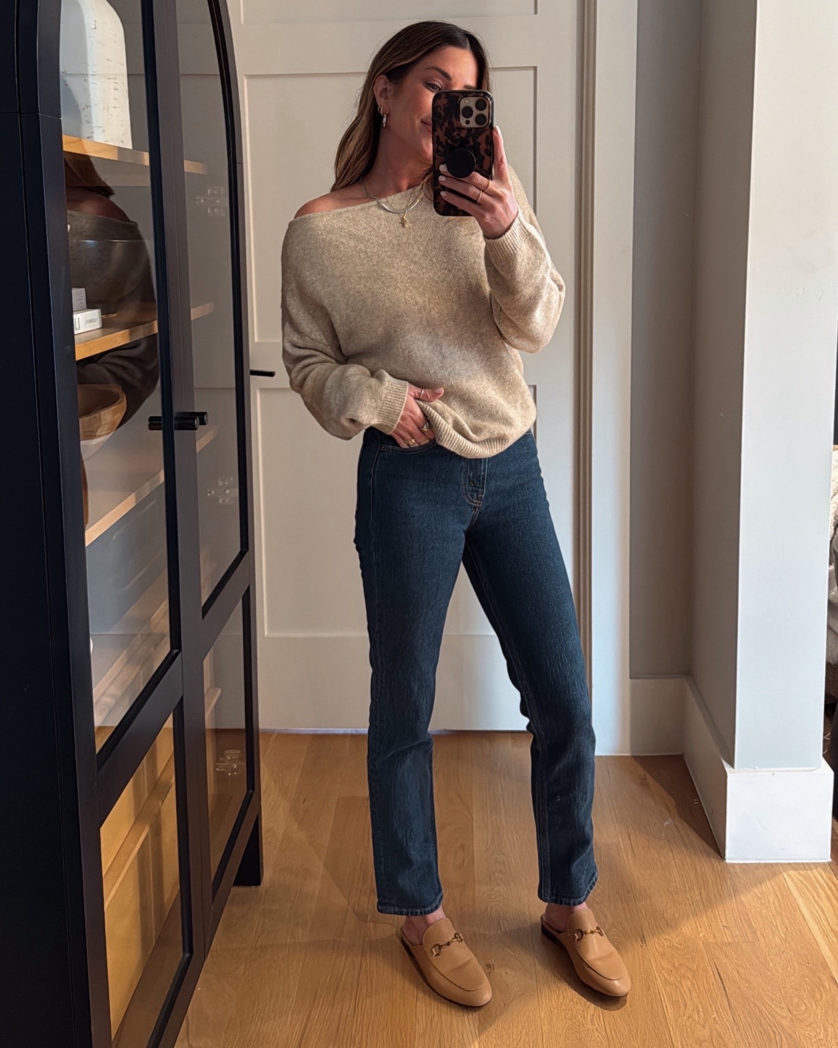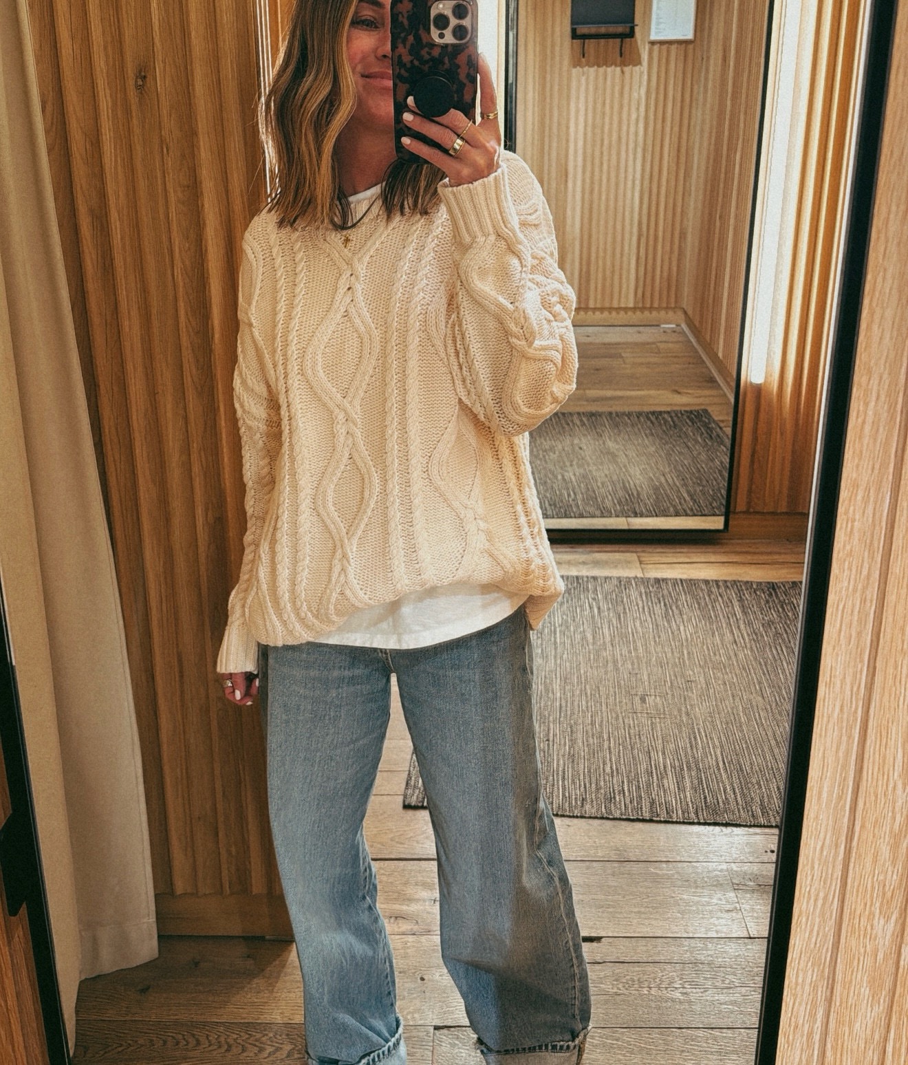 An easy way to spice up your sweaters— layer a lace top underneath! Wearing a small in the sweater, and jeans are true to size.