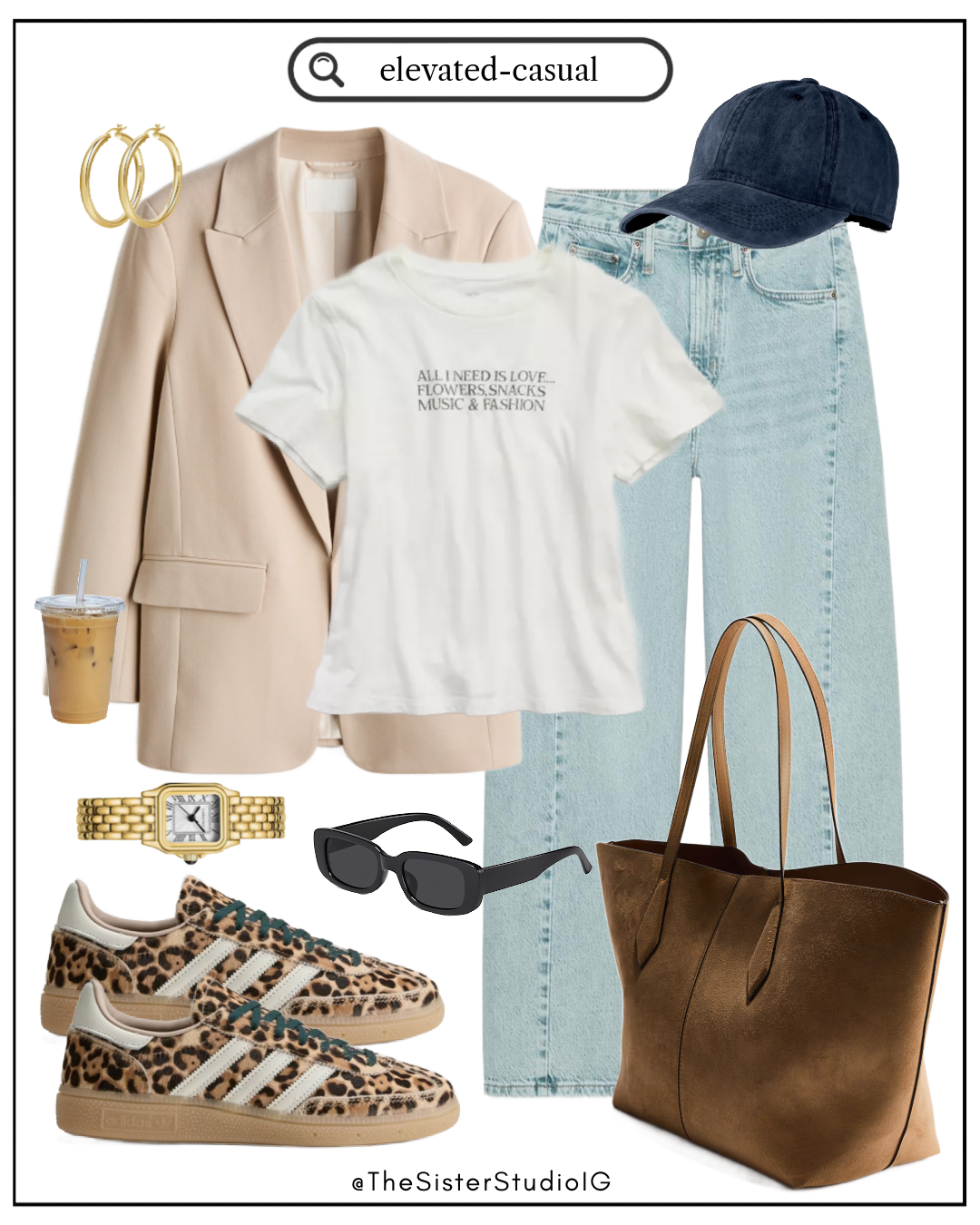 Blazer // Tee // Jeans // Sneakers // Watch // Sunglasses // Bag // Hat // Earrings