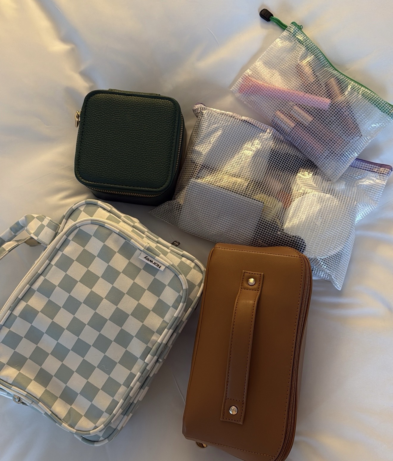Small Travel Jewelry Box Organizer -6 Small Carry-on Zipped Pouches // Large Capacity Travel Toiletry Bag // 18 Pack 8 Sizes Mesh Pouch, 9 Colors, Waterproof Zipper Bags // Checkered Makeup Bag Organizer Toiletries Bag