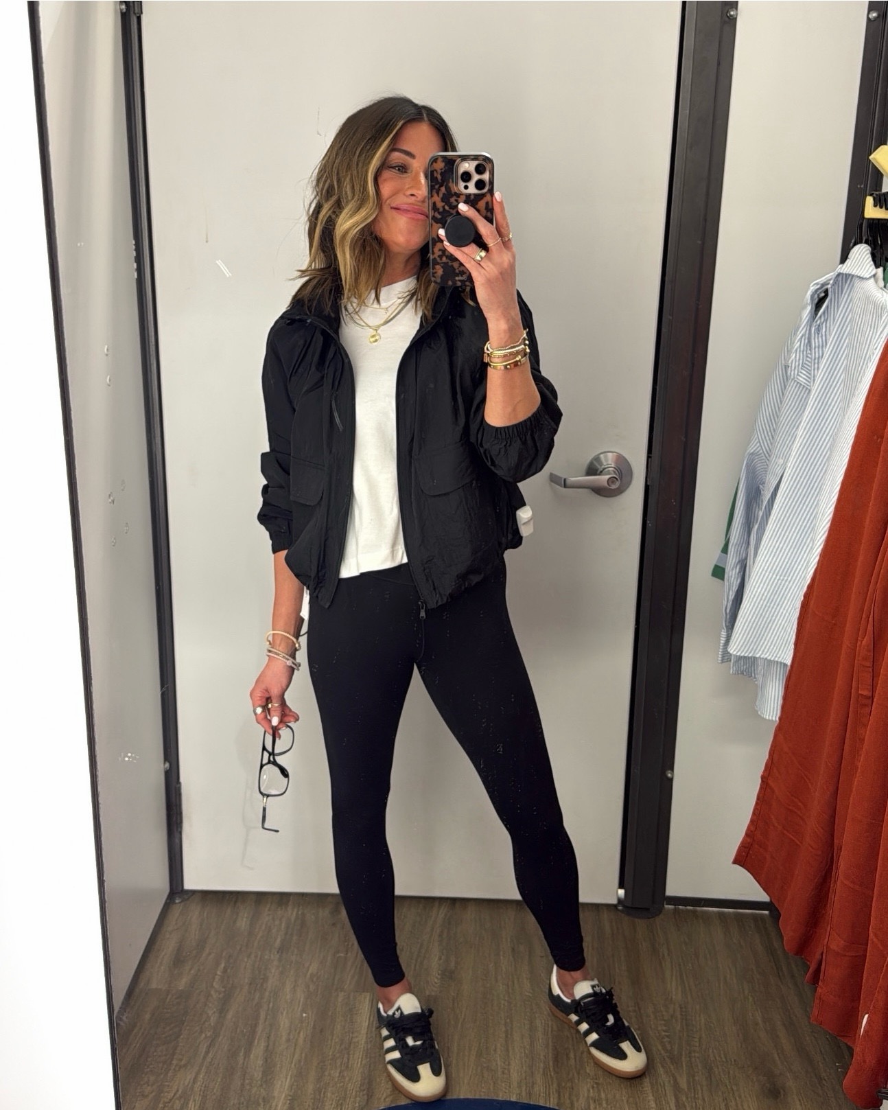 Full-Zip Windbreaker // Tee // Leggings // Sneakers