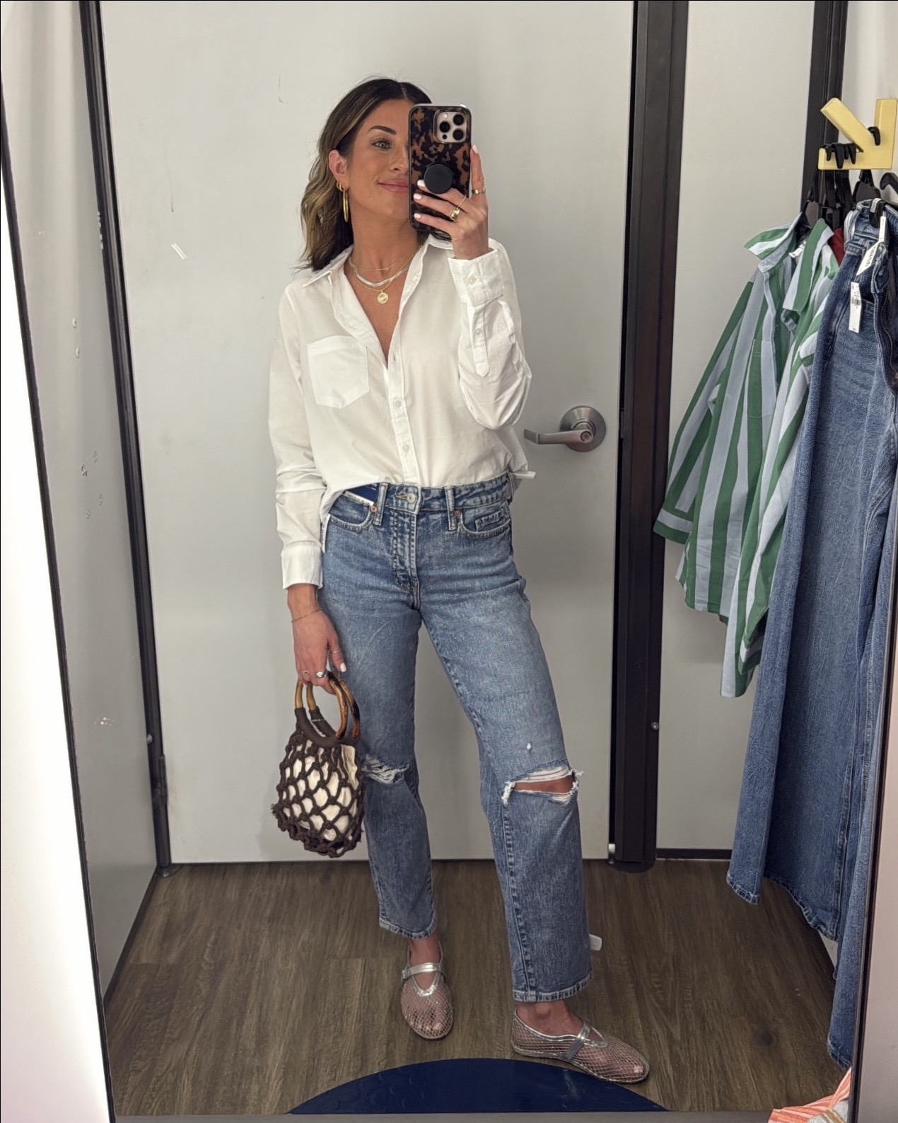 Classic Button-Down Shirt// Jeans // Bag // Shoes // Necklace // Necklace