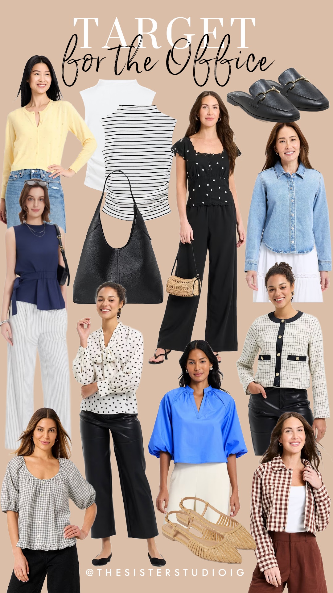 Pointelle Button-Down Cardigan // Tie-Waist Woven Tunic Shirt // Pants // Puff Short Sleeve Button-Up Peasant Top // Balloon Sleeve Blouse // Shoes // Long Sleeve Tie Collar Woven Top // Jacket // Cardigan // Bag // Signature Crepe Essential Trousers // Button-Front Scalloped Hem Top // Denim Top // Tank // Mule Flats